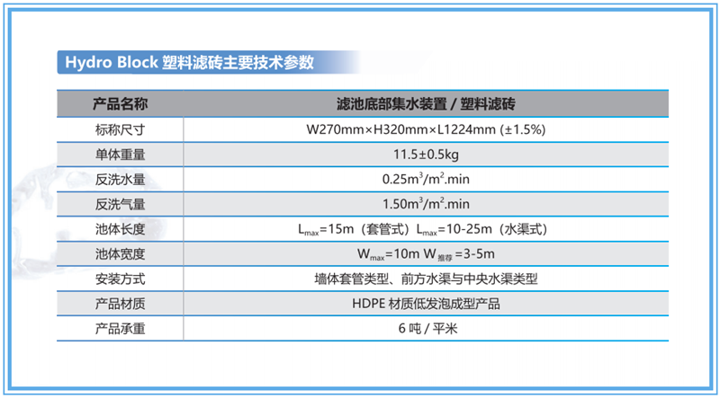 ◇ 濾磚:雙重平行側(cè)向濾磚,提供超強的反沖洗氣水分配性能;