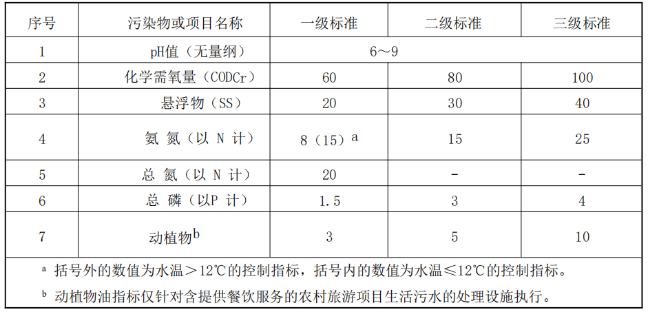 c) 農(nóng)村生活污水經(jīng)處理后的水污染物,其最高允許排放濃度按表 2 規(guī)定執(zhí)行。