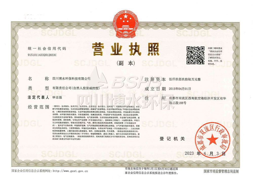 博水環(huán)保已成為四川省高新技術(shù)企業(yè)、四川省環(huán)保產(chǎn)業(yè)協(xié)會理事單位、中國環(huán)保產(chǎn)業(yè)協(xié)會會員,前后獲得70多項國家技術(shù)專利及軟件著作權(quán)、水污染治理甲級、環(huán)保設(shè)備制造甲級、污水處理設(shè)施運(yùn)維二級、市政工程總承包三級、環(huán)保工程三級、機(jī)電安裝工程三級等相關(guān)資質(zhì);通過了ISO9001/2015質(zhì)量/環(huán)境/健康、質(zhì)量服務(wù)AAA示范單位等體系認(rèn)證;